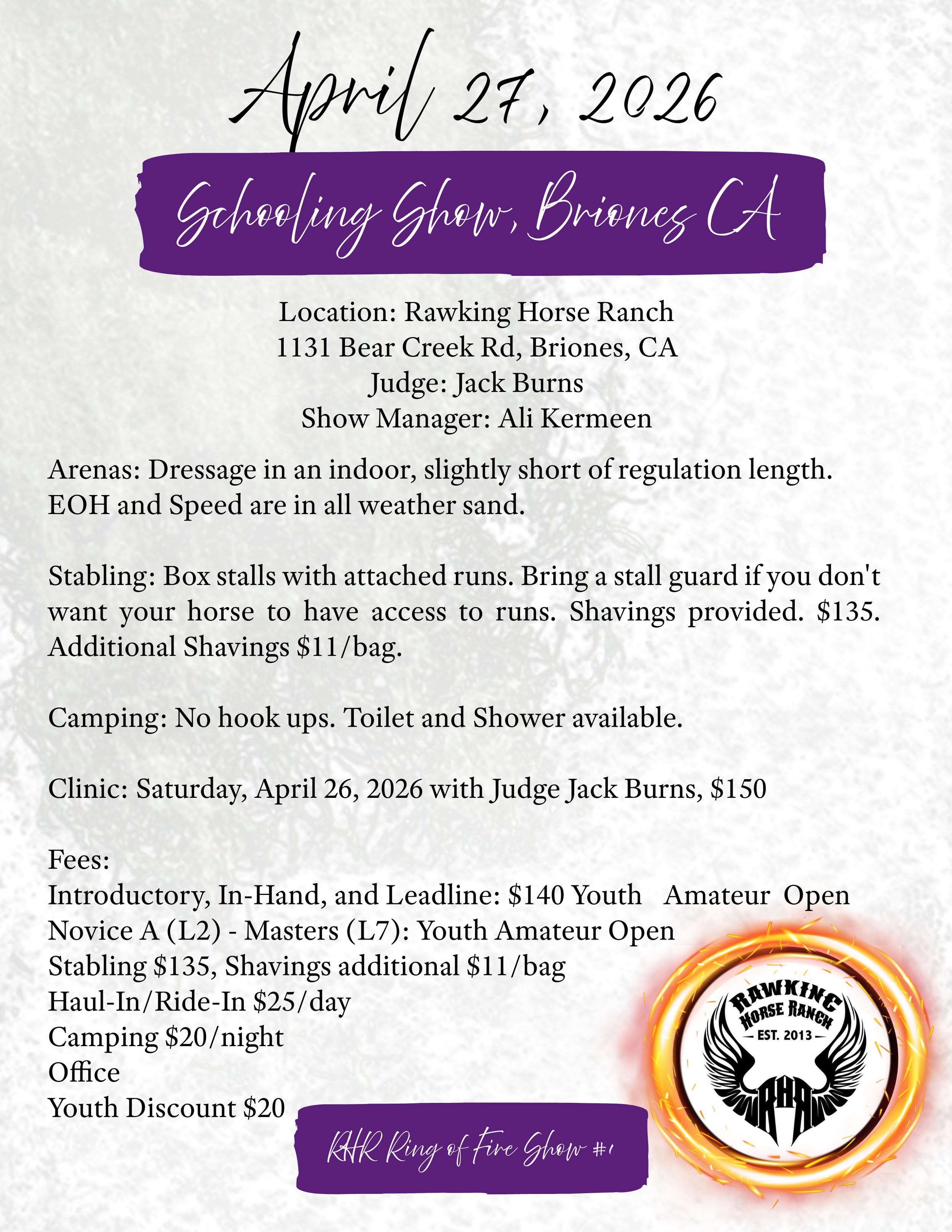 April 26th Clinic & April 27th Schooling Show